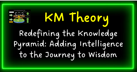 Many of us are familiar with the classic pyramid illustration in Knowledge Management (KM), where the hierarchy starts with Data at the base, followed by Information, Knowledge, and culminates at the top with Wisdom. However, I'd like to propose an alternative perspective – one that inserts Intelligence as a crucial stepping stone before reaching Wisdom.